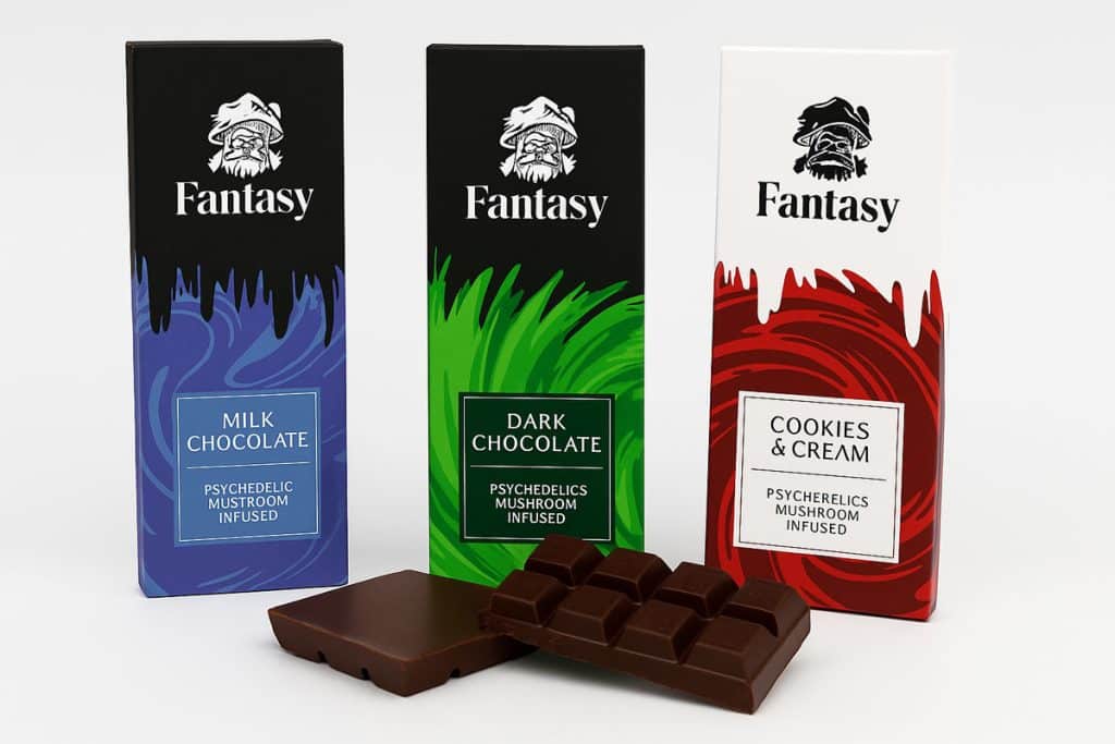 Embark on a flavour adventure with the Fantasy Psychedelics Chocolate Bar, infused with 3000mg of premium magic mushrooms. Each piece offers a unique psychedelic journey, expertly crafted to lead you to self-discovery and cosmic connection. Indulge in this extraordinary experience and unlock the mysteries of the universe.