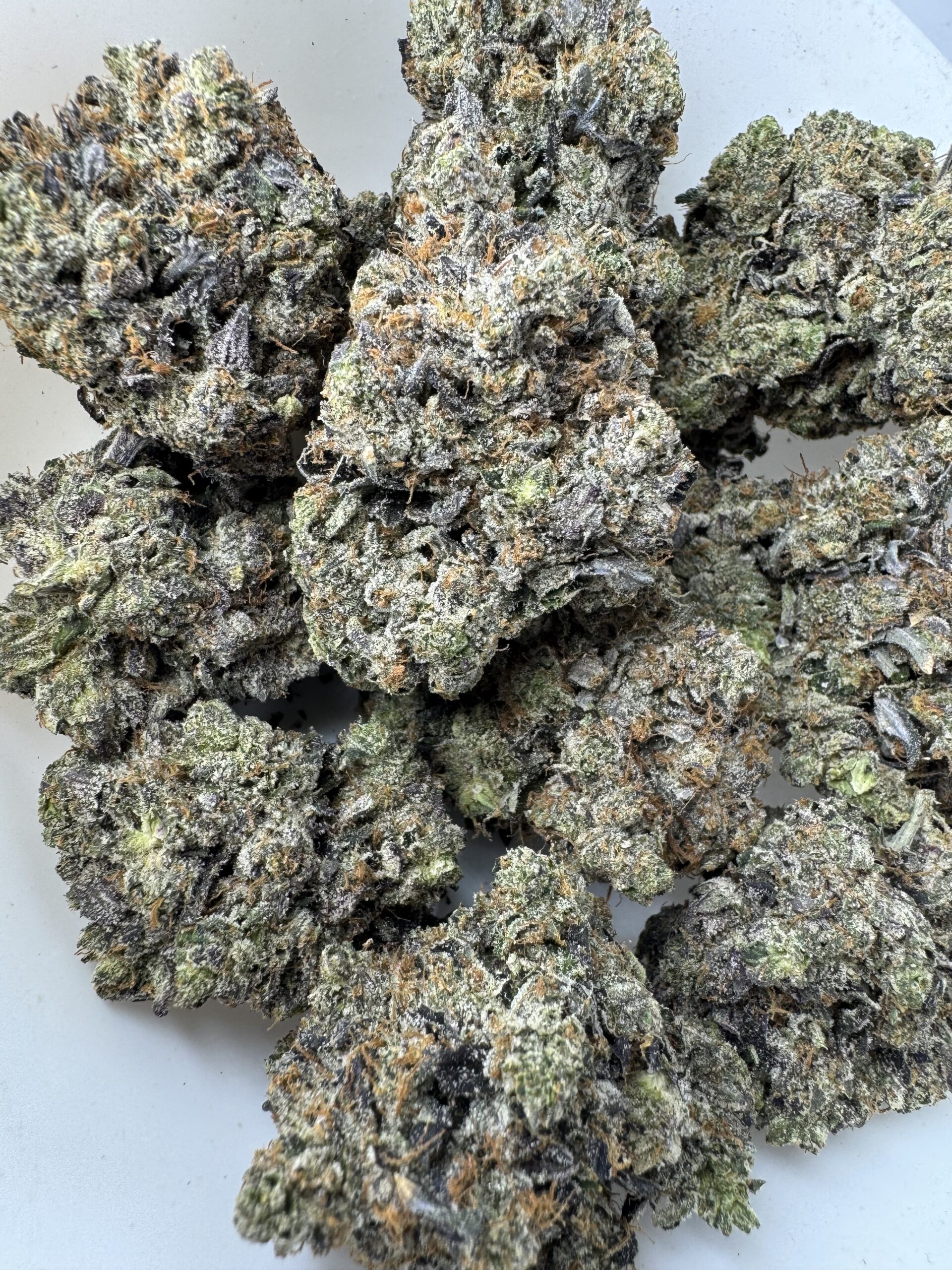 El Muerte, also known as “The Death,” is an indica dominant created through crossing the potent Death Bubba X another unknown indica dominant strain. Although its parentage isn’t fully known, El Muerte is a favorite of breeders and patients alike for its high level of potency and super heavy effects. The high comes on fast and hard, smashing into your brain almost as soon as you exhale with a lifted sense of cerebral energy. This energy quickly fades away, replaced by an unfocused haziness that can have you feeling slightly sleepy at times. As your mind fades in and out, a heavy body high will begin to creep into your limbs, locking you to the couch and leaving you fully sedated before you know it. With these hard-hitting effects and its high 20-25% average THC level, El Muerte is often chosen to treat chronic pain, insomnia, arthritis and headaches or migraines. This bud has a classic fruity flavor with hints of skunky diesel and spicy herbs. The aroma is very similar, although heavily pungent and earthy, too. El Muerte buds have grape-shaped forest green nugs with lots of thin amber hairs and a coating of tiny frosty white amber-tinted crystal trichomes.